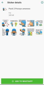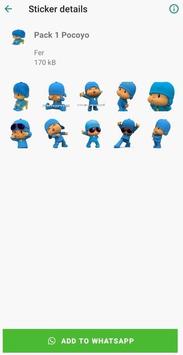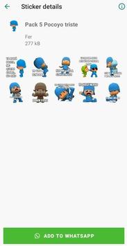 La aplicación tiene Stickers (Pegatinas) de Pocoyo algunos sin frases y otros con frases. Los Stickers pueden ser descargados para poderlos utilizar por WhatSapp. La aplicación estará actualizándose continuamente para que tengáis nuevos Stickers.