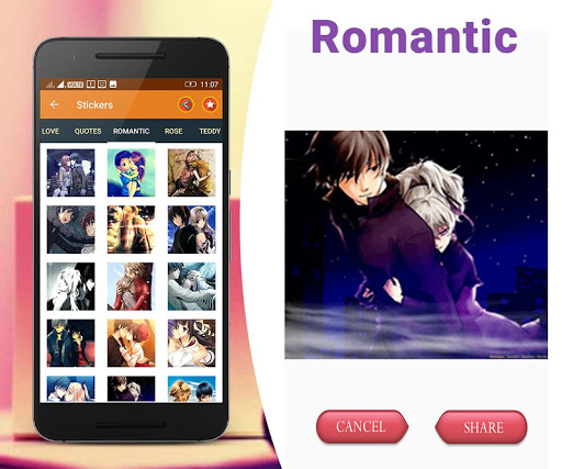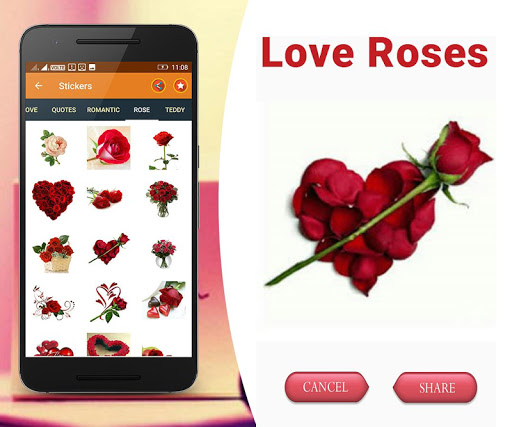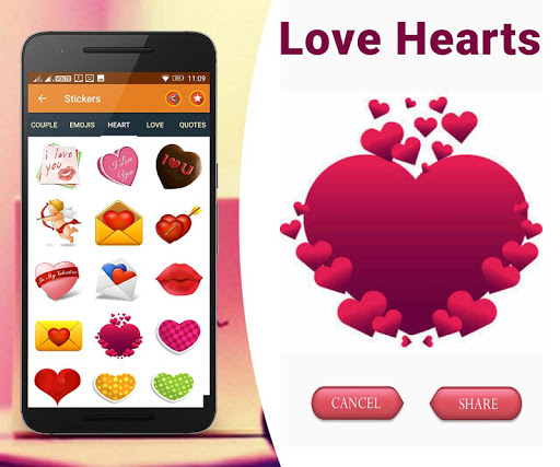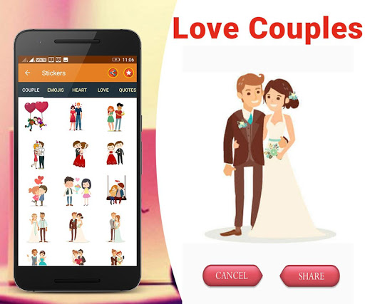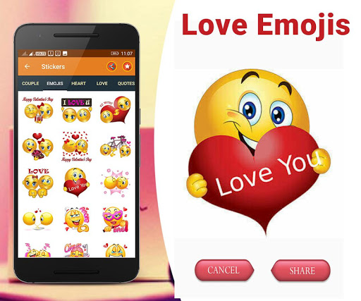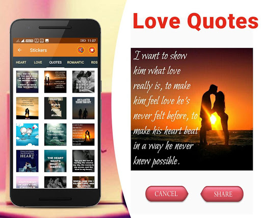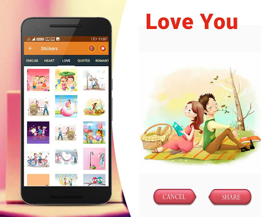 1. This app is specially designed for them who love to share their emotions with social media via love stickers, love photos, love scenes.