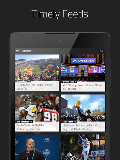 Control how you view Steelers content by setting up alerts and sorting through categories, while intuitive menus make it easy to toggle between feeds from Still Curtain and throughout FanSided for the freshest news.