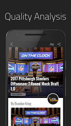 The Still Curtain app is a one-stop shop for Pittsburgh Steelers fans, featuring breaking news, expert analysis and hot rumors about the Steelers. Personalize your feed by picking and choosing the content you want, browse topics such as the NFL Draft or Free Agency, and stay up to date on the Steelers with instant notifications sent right to your phone.