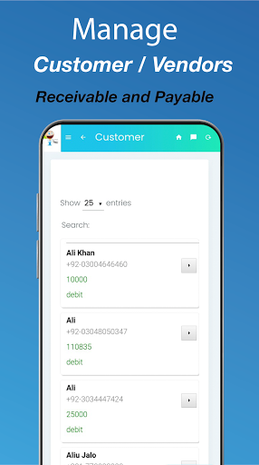 Your account receivable and accounts payable. So basically, with this software you can ledger account manage for all your customers, vendors and employees. First you can create your customer account with their phone number and opening balance. Then each customer you just have to put their name on invoice, mention the amount received while selling. remaining amount will be added to customer account automatically. Later on their balance can be updated when a customer pay you their remaining balance. so goto add payments section, select customer and input the amount received. It will automatically update ledger balance for that selected customer. user can also print out customer report, account receivable report and accounts payable report.