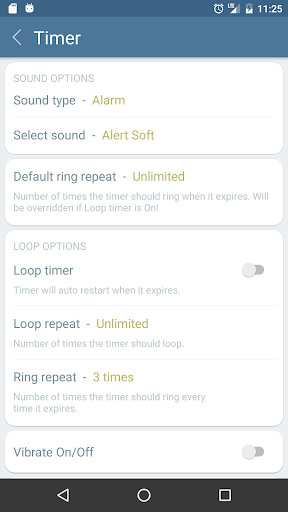 Loop Timer: Timer will automatically repeat when finished. You can set up the number of times the timer should loop and ring repeat.