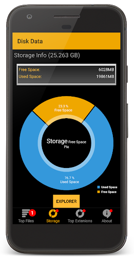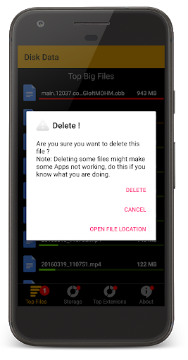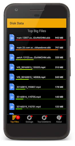 Using our simple Storage Space manager - Disk Data App you can easily scan and find the biggest files on your device storage fast and clean them easily, by analyzing and displaying all storage big files