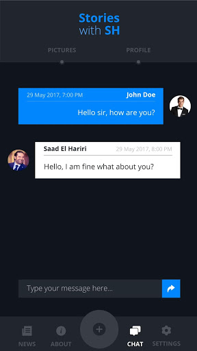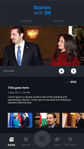 Stories with SH allows you to take pictures and share them with other people. It also allows you to chat with the Lebanese prime minister Saad El Hariri.
