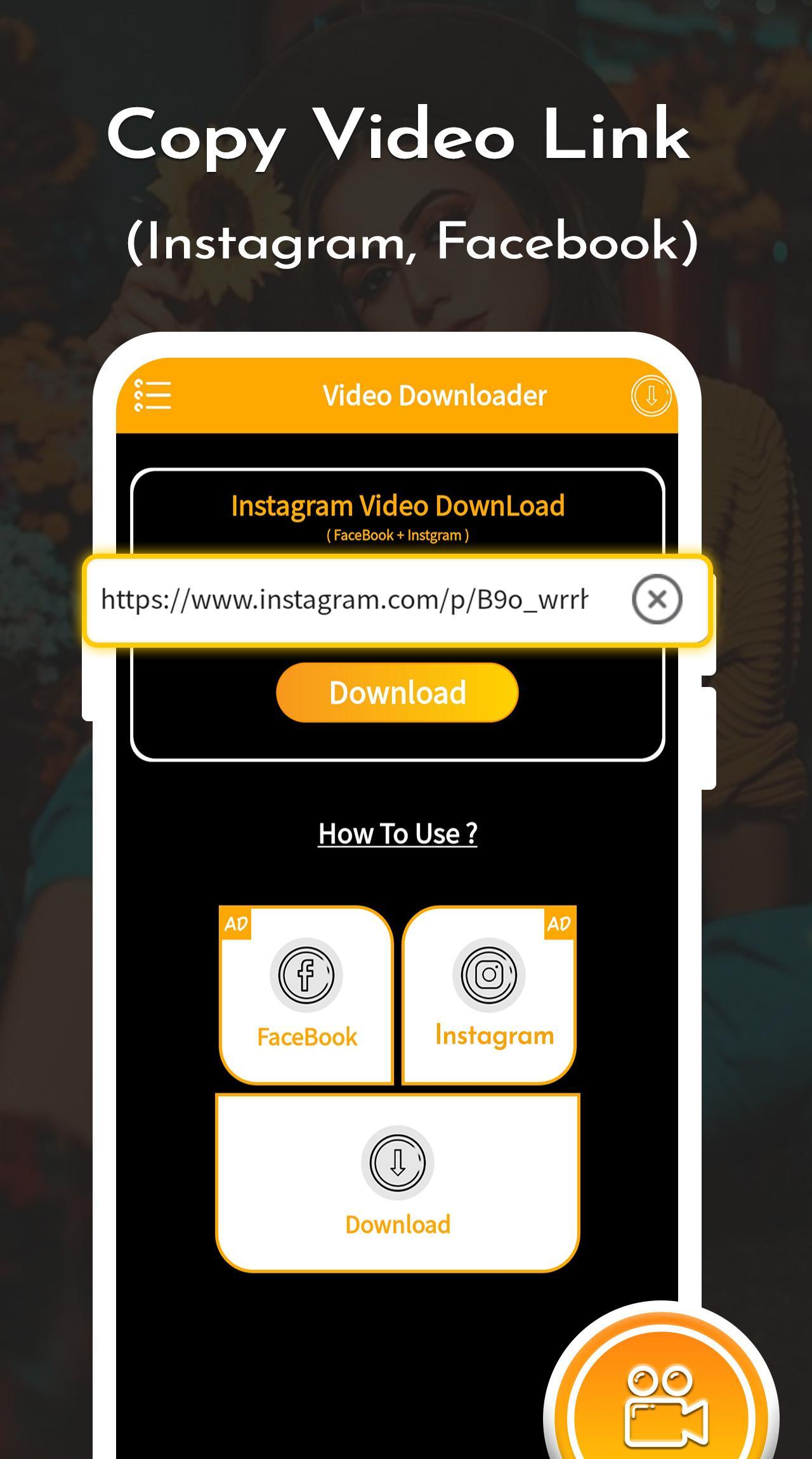 - Copy Link of Facebook then Automatically redirect App,then Paste automatically and Click the Download Button