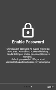 unaweza ukaweka PASSWORD katika application hii ili kuzuia watoto wadogo kusoma simulizi za humu.