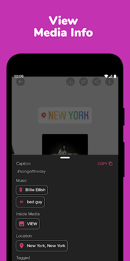 √ Save story and post with their caption,mentioned users , tags , location and Spotify or other app data. Then view thats data with one click.