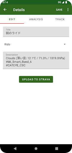 As an additional feature, weather information is automatically set in the comment field at the ride.
