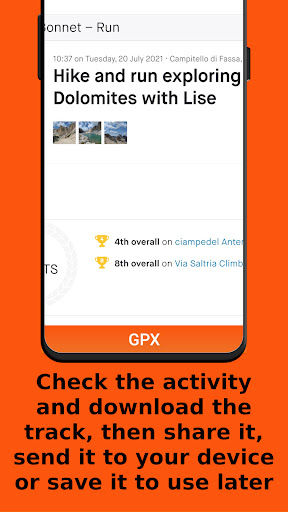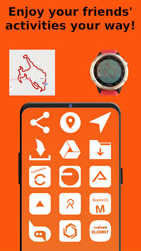 - Share the GPS track with your friends or followers via instant messaging apps, e-mail, social networks, ...