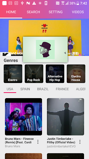 "Stream Top Music Of Country" is a third party application of youtube music, which gives you access to all youtube music videos and play video music via floating player.