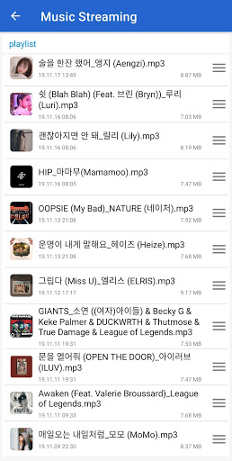 - Music/MP3 Streaming Player : You can play audio files on the clouds. You can add files from multiple servers to one playlist.(How to use : https://simplefilemanager.tistory.com/3?category=353857)