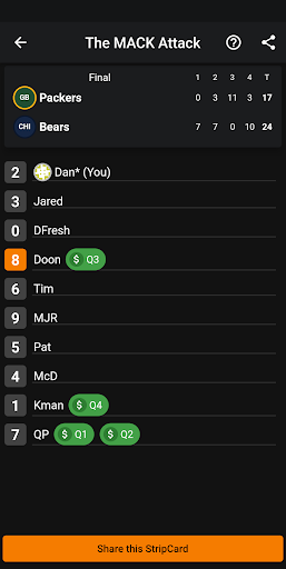 Playing a StripCard is no fun without some competition. Be sure to invite your friends or join one of their StripCards