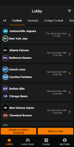 Sporting events are automatically populated and scores are constantly updated. StripCard matches update live throughout the duration of the event so you always know who is currently in the winning slot