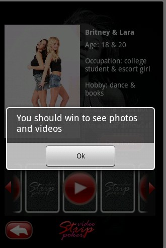 • REAL Strip Poker (draw , the most popular strip game for Iphone, now in your android • REAL girls and couples shot especially for the application (HOT-HOT-HOT VIDEO and photo • 1.3 version is Perfect for Droid, Nexus, G1 and all others phones