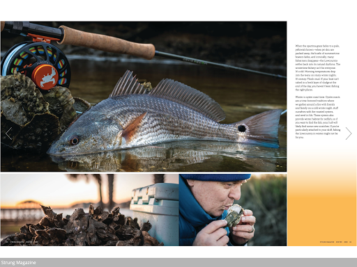 Strung is large format, perfect bound, and printed on archival quality paper; collectible and worthy of coffee tables everywhere. A magazine shouldn’t get thrown away. It should live on like memories made in the field and on the water.