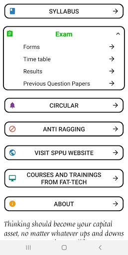 Links for: Anti ragging, Syllabus, Exam forms, Previous question papers, Time table, Results, Circulars and more. Motivational quotes