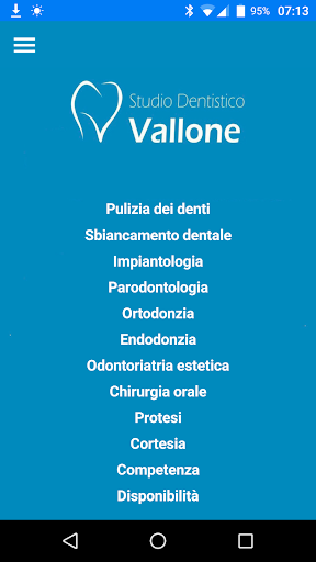 Questa app vi consentirà di contattare lo Studio Dentistico Vallone per qualsiasi tipologia di consulenza e di rimanere in contatto con il Vostro Studio.