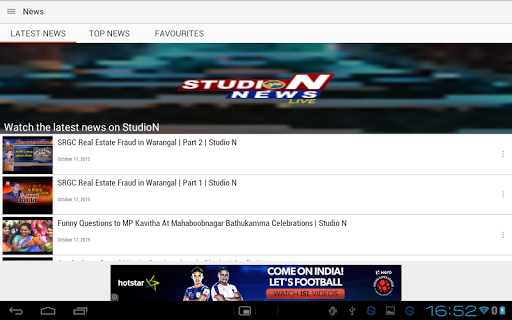 Watch Studio N News Channel., watch latest news from various topics like International news, Sports, Business, Entertainment etc. from Studio N News Channel on your mobile. Watch latest video bulletins from Studio N News Channel. See whats happening in your area or around you when you are traveling.