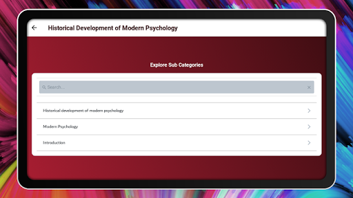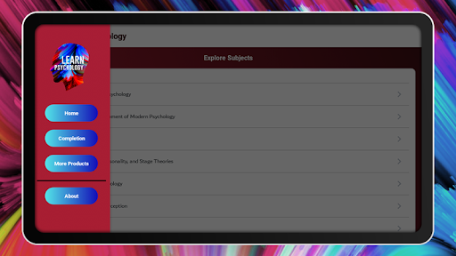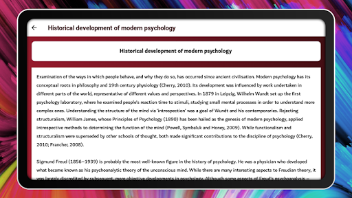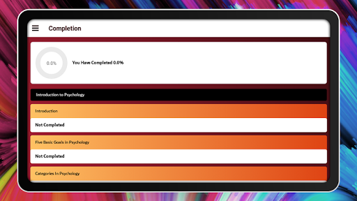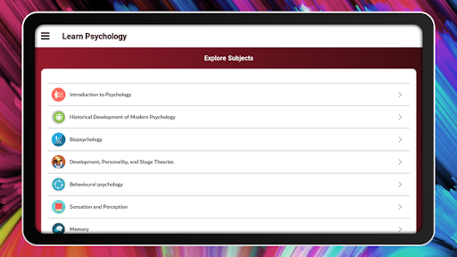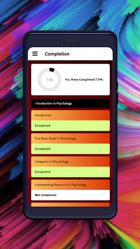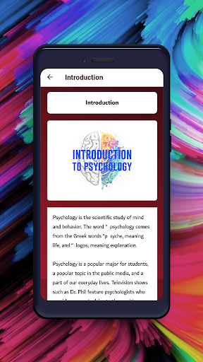Learn Psychology provides variety of subjects with many useful information. Explore the subjects and study them one by one. You'll be able to track them by completing each subjects on the go. The contents are separated as a psychology eBook. you can event get notes from it.