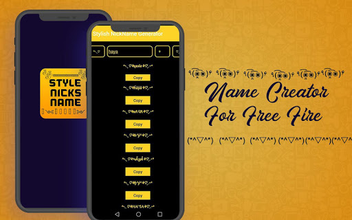 Stylish Nickname generator - Fantasy Cool Text Symbol consists of 1000 Styles Nickname maker frame for Free. through this application, you can make a stylish Nicknames, Pet Names, Your Friends Names, your Family names in different text, Font and style. this application has a user-friendly user interface and very simple to use.