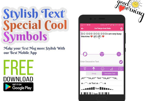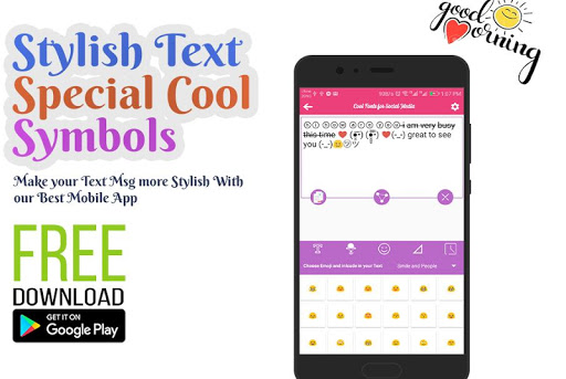 Cool Stylish Text is a new text styling and decoration tool to restyle the normal text into Stylish Text added emoji faces lovely romantic symbols.