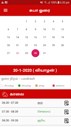 Subha Horai Tamil app gives the users to check Horai timing for an entire day, week and month. Also provides the information of each Horai in detail.