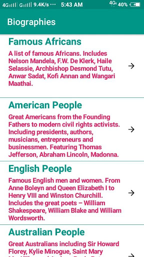 ★ This app provides the Biographies in English and you can browse category wise stories.