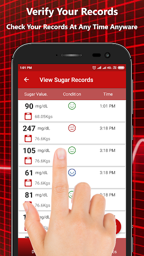 Sugar Test By Finger History app is designed for those patients who are suffering from diabetes. User have to measure the Blood Sugar Level using Digital Glucometer and enter the values to maintain the record.