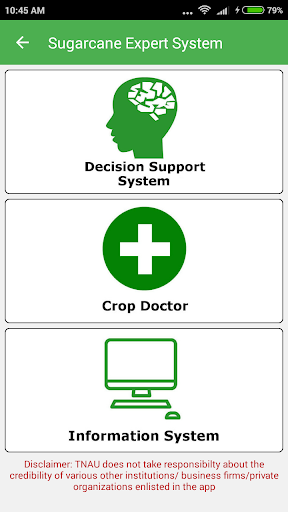 TNAU's sugarcane expert system is a mobile app that covers Cultivation Practices, Sustainable Sugarcane Initiative, Irrigation Management, Nutrient Management for Sugarcane, Crop Protection for Sugarcane, Farm Implements for Sugarcane, Post Harvest Technology for Sugarcane, Marketing for Sugarcane, Institutions and Schemes for Sugarcane and Related Links for Sugarcane.