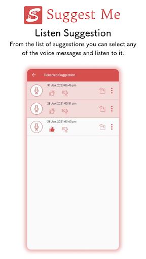 From the list of suggestions you can select any of the voice messages and listen to it. You can like or dislike it and the sender will be notified that your suggestion is being liked or disliked.