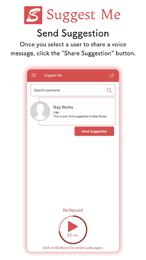 Once you select a user to share a voice message, click the “Share Suggestion” button and the suggestion will be shared. Receivers will get notified that a new suggestion has been received but your identity will not be disclosed.