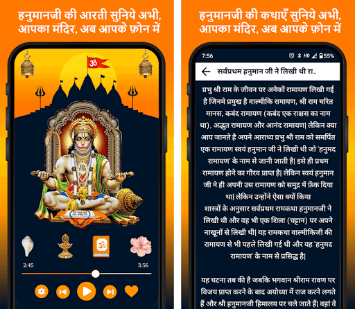 आपके पूजन के लिए हमने भगवान श्री हनुमानजी की आरती, चालीसा, भजन, मन्त्रों, कथा व् पूजा उपासना संग्रह एप में और साथ साथ भजन और मंत्र, स्तोत्रम को शामिल किया है। अभी सुनने के लिये डाउनलोड कीजिये.