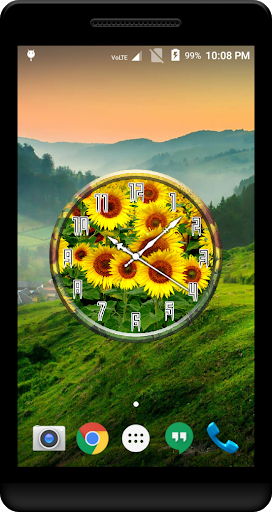 Sunflowers clock live wallpaper shows a high quality analog clock.