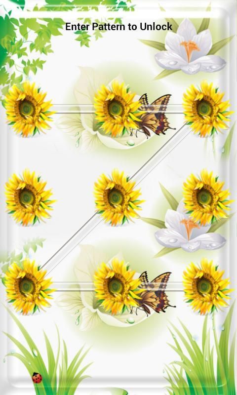 Beautiful Sunflower Theme Pattern Lock Screen for your mobile home. option set different types of pattern styles and pattern backgrounds.