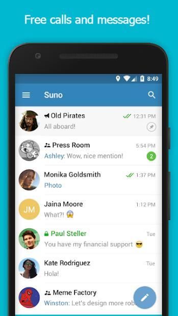 Suno Messenger Is a chat app that allows you to send messages, photos, videos and files to your contacts for FREE