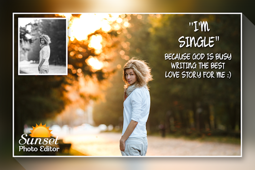 Sunset Photo Editor Just choose what kind of effect you want to achieve.you'll definitely enjoy this best picture editor. Get Sunset Photo Frame free app with cute picture frames free download and you'll definitely enjoy this best picture editor. Sunset Photo Frame can beautify all your photos and make the best moments of your life unforgettable.
