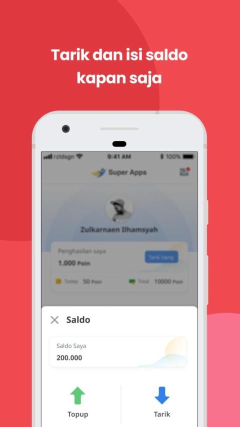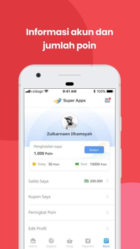 start watching ads, share advertisements, and buy products from SuperApp get points that can be redeemed with shopping vouchers or ppob like credit, electricity tokens etc.