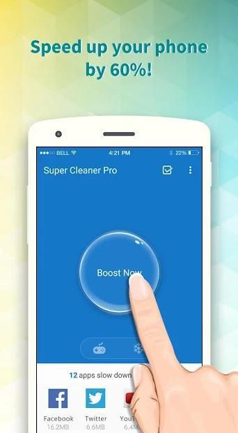 It can clean and boost your phone very fast. It's small with installation package size only 1 MB; and it is really smart to boost memory and clean junk & cache faster than others, and make the phone speed up effect last longer. Super Cleaner Pro (clean & boost) also helps to cool down CPU and your whole device, and stop other apps to drain battery. It is really Super Cleaner (clean master), Super Booster (boost master), and all in one light app.