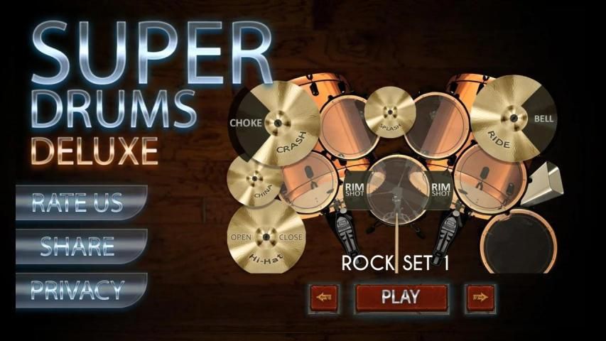 Simple and fun application, duluxe drums provides 8 different drum set displays, which consist of: rock drum set 1, rock drum set 2, metal set 1, metal drum set 1, blues set, hip hop drum set, basic drum set set, latin drum set and 40 backing tracks.