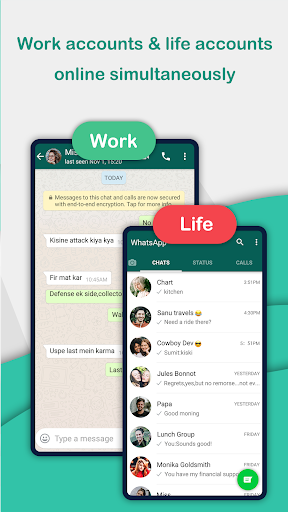 Multiple accounts are online at the same time, such as multiple WhatsApp, one for work business and one for life chat.