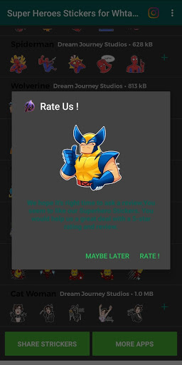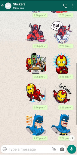Use our special design Superhero Stickers for WhatsApp application and this have all amazing collection of different stickers with it you can make your chatting more interesting and this application is totally free to use. For any kind of suggestion if you have regarding our app then try to send us an email, and describe how we improve our existing UI or any other type of improvement.
