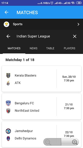 In This App You Get Indian Supper League Match Schedule, Points Table, Players Details. And Get All Latest News About Hero Indian Super League 2020.