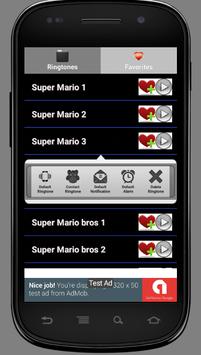 Press Tab selector so that the pop menu appear ( in this activity you can set the Super Mario ringtones free so you can choose as a ringtone,alarm,private alarm. etc)