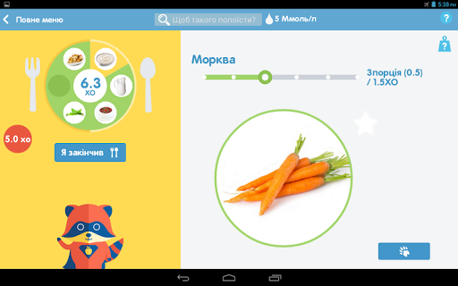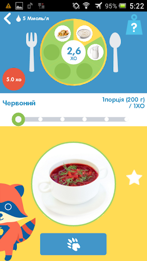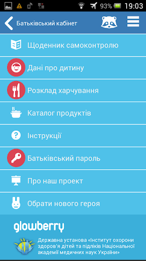 In normal mode a child with the help of the notifications controls his nutrition regime, and can select various food out of the application's rich menu, which consists of 220 basic and usual for Ukrainians dishes - to compose his ideal meal.