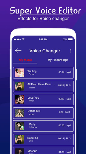 Super Voice Changer, a fancy voice editing recorder with movie characters effects! Let's change your voice into your favorite movie characters like superheroes, autobots, cartoon, anime heroes, baby, male and female effect! Funny voice changer shapes interesting life!