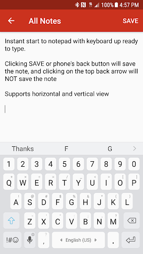 * Tap SAVE or phone's back button to save/update the note