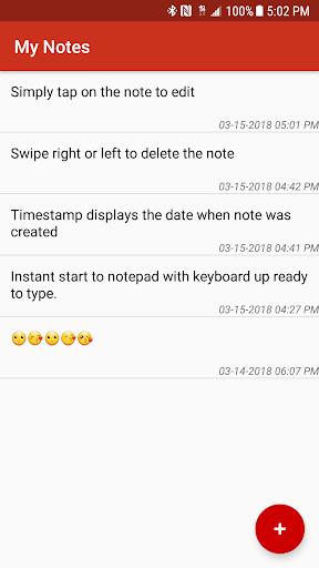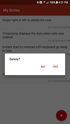 * Swipe right or left to delete the note