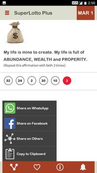 Daily you will receive one Affirmation along with the SuperLotto Plus number for the day, which will be unique to you.
