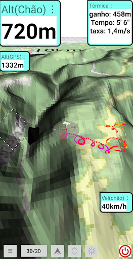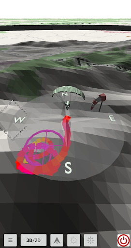 Free flight software. The goal is to support the pilot mapping the thermals through the 3D flight trail. You can test the application using an existing igc file and replay it. The software also has the ability to display flight information easily and intuitively through infoboxes. The pilot can choose the location of these infoboxes by dragging with his/her finger and also choose the text font size (information such as GPS altitude, altitude above groun level, speed over ground, etc.). There is also the possibility of downloading elevation data from each continent (this information is taken from the NASA project that is available for free through the SRTM project).
