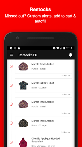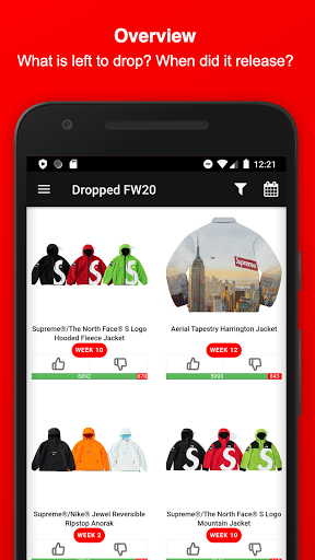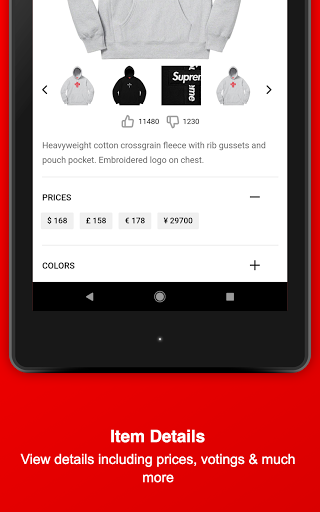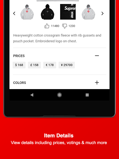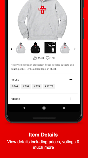 Stay informed about Supreme and download this Fan-App - Find out what might be dropping on Thursday, get notified about Restocks of already sold-out items, view which item sold-out the fastest, upvote your favorite Season items, dig in the item history of Supreme, attend awesome Giveaways & get to meet new people and communicate with the Supreme community and culture.